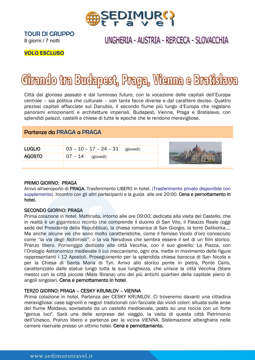 Girando tra Budapest, Praga, Vienna e Bratislava da Praga 8 giorni