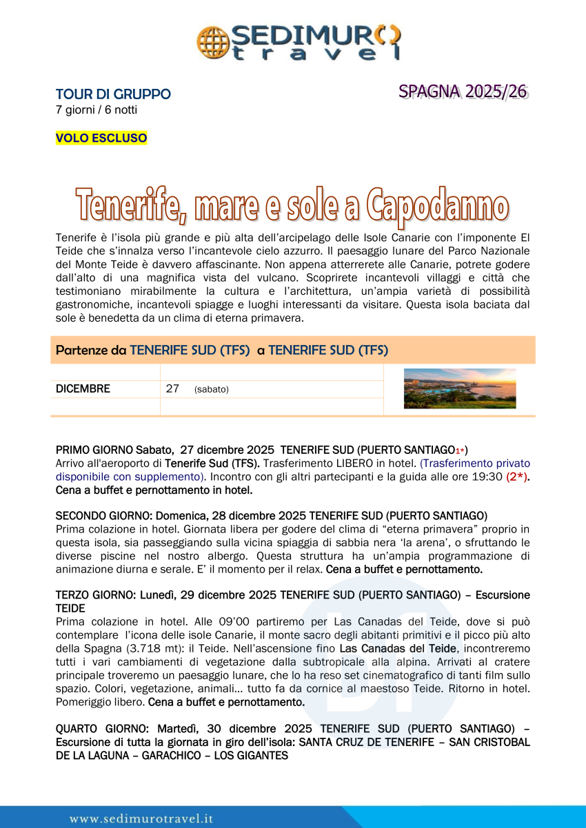Tenerife, mare e sole a Capodanno da Tenerife Sud 7 giorni