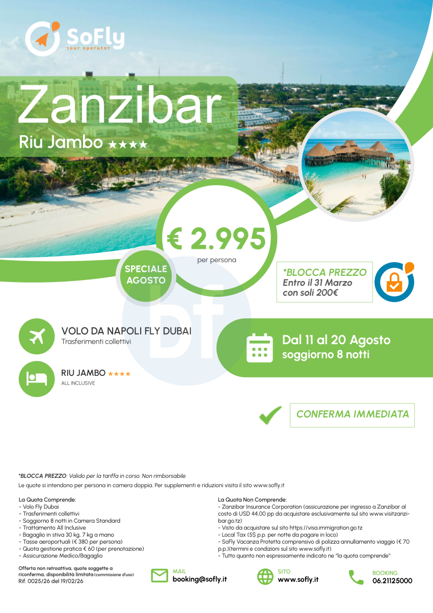 Speciale Zanzibar Agosto con volo da Napoli