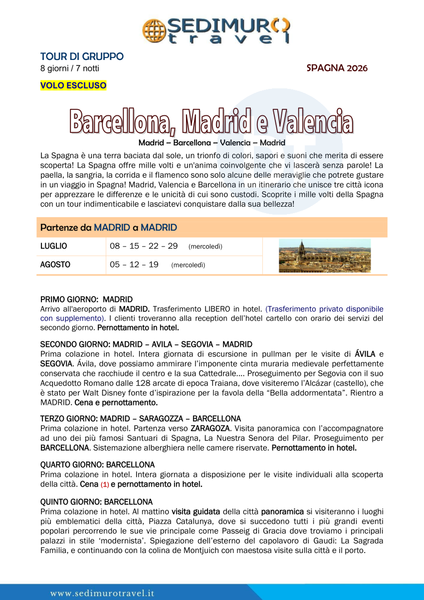 Barcellona, Madrid e Valencia da Madrid 8 giorni