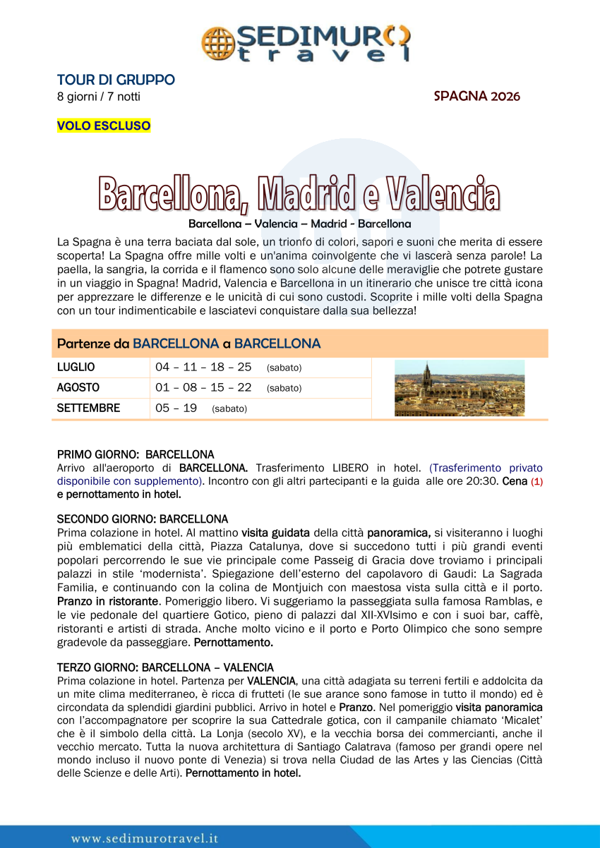 Barcellona, Madrid e Valencia da Barcellona 8 giorni
